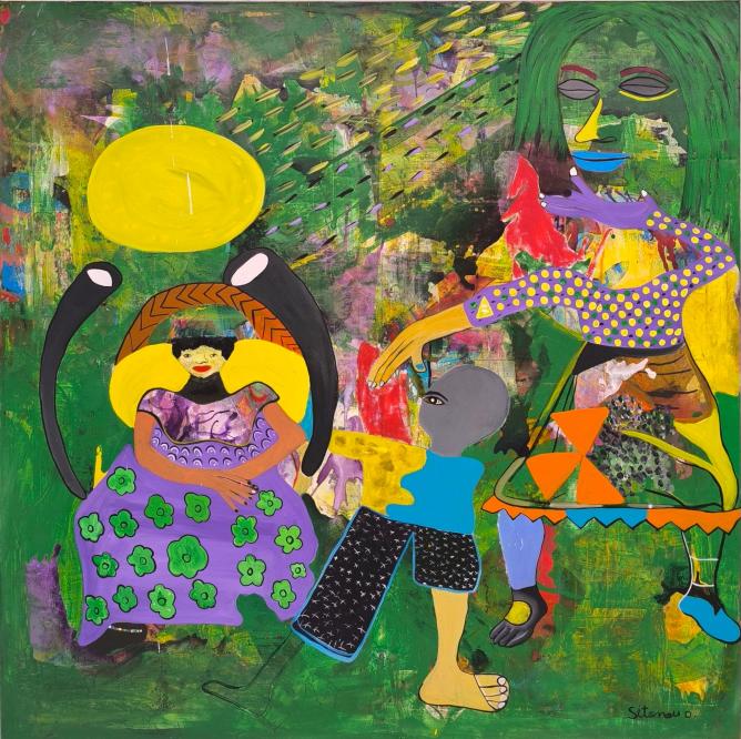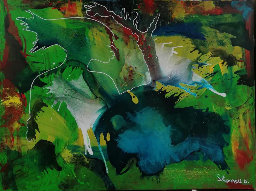 L’œuvre de Setonou Djedatin s’inscrit dans un dialogue profond entre terre, mémoire et sacré. À travers la matière, le signe et la trace, l’artiste explore les territoires invisibles de l’histoire africaine, en particulier ceux portés par les femmes, longtemps gardiennes silencieuses des savoirs, des rites et des transmissions.
